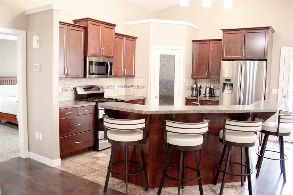 This Whispering Ridge home is built for life in Grande Prairie, where summers are best spent outdoors and winters call for comfort. The yard is made for summer with tasteful landscaping, full fencing, irrigation, and no rear neighbors. Step out onto the deck to take in the incredible view, or walk out to the stamped concrete patio where you can relax or fire up the grill while the kids and pets play. Inside, the main floor welcomes you with soaring ceilings and a stunning stone gas fireplace. The kitchen fe...