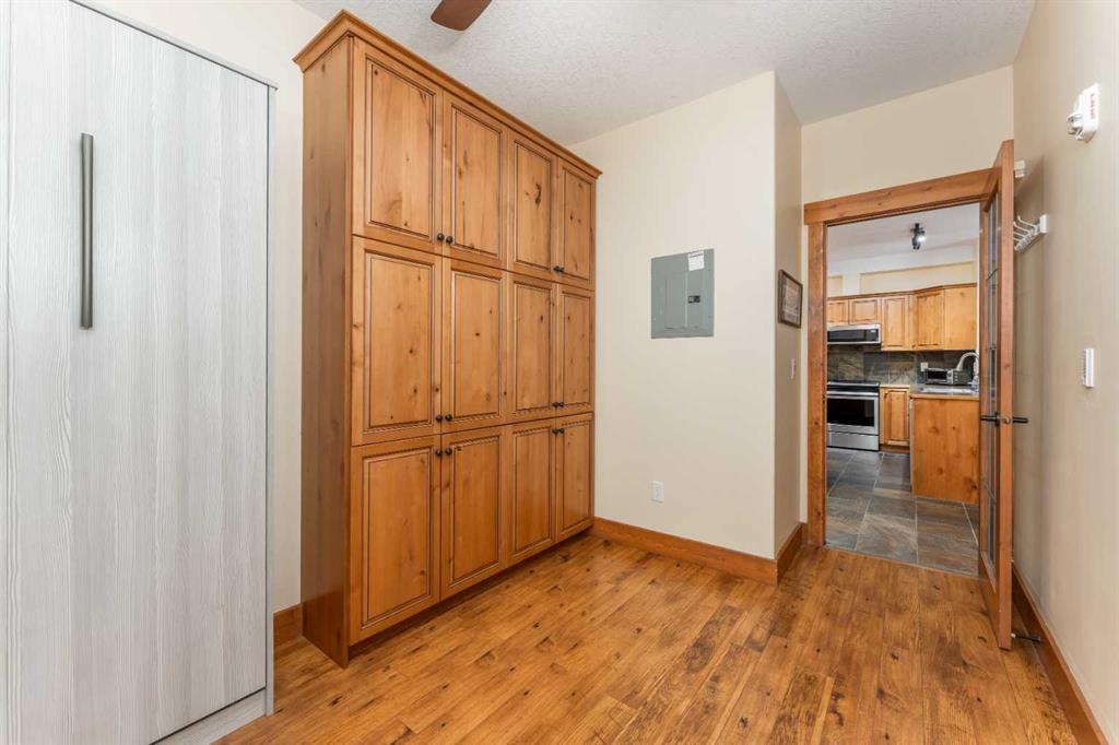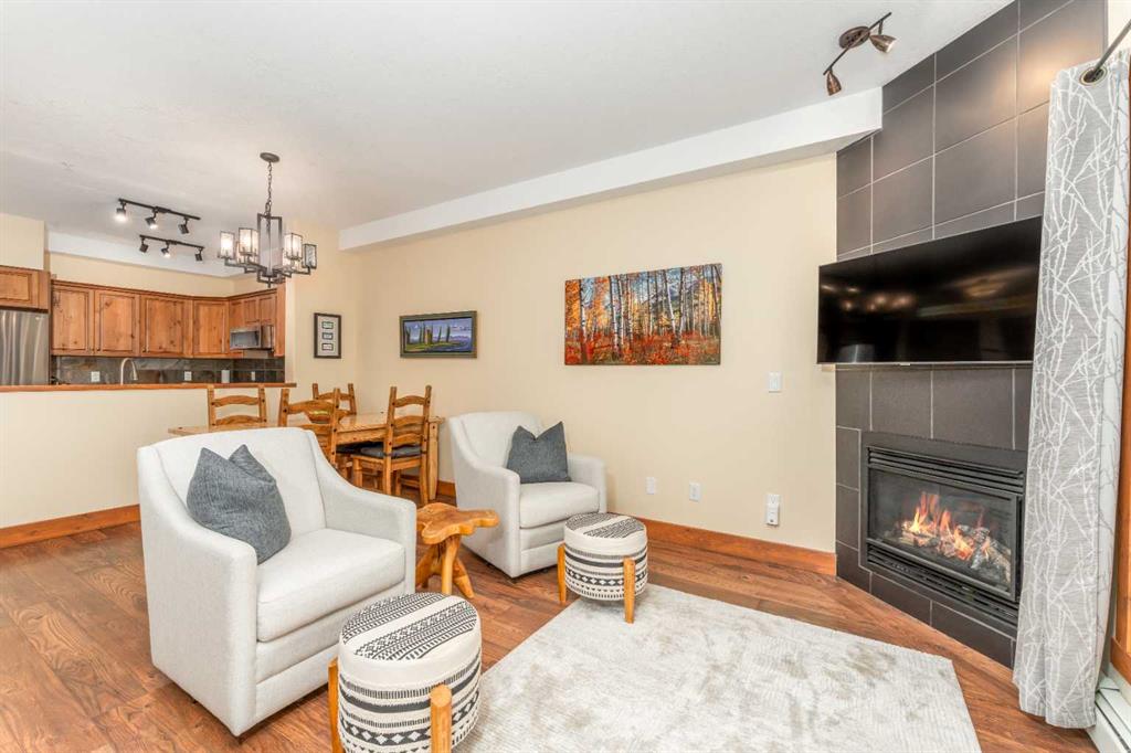 Welcome to 114-155 Crossbow Place – a 1 bedroom plus den condo in the popular 40+ Crossbow Point community. This ground-floor unit offers the ease of a walk-out patio that opens onto peaceful green space with mountain surroundings. Inside, the den is equipped with a custom single Murphy bed, making it an ideal spot for visiting guests or a flexible home office. This condo includes a titled underground heated parking stall and a storage locker for all your mountain gear. Residents also enjoy access to a wel...