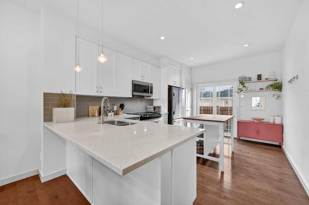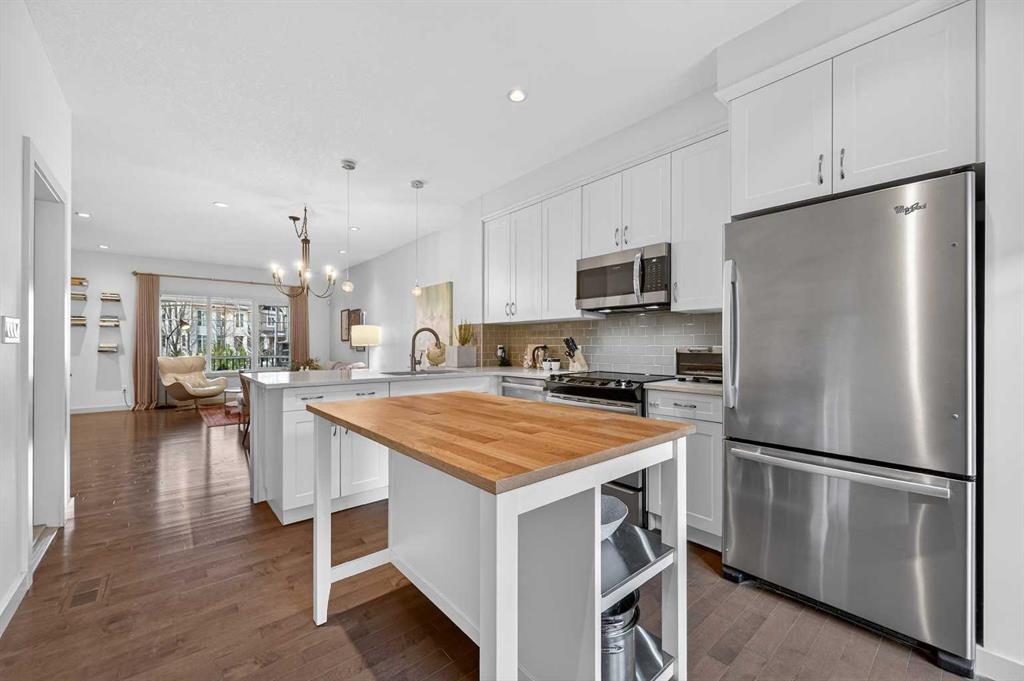 Welcome to this beautifully maintained and thoughtfully updated townhome in the award-winning Currie Barracks community. Offering nearly 2,200 sq ft of developed living space across three levels, this Homes by AVI built “Mahoney” model features 3 bedrooms up, 4 bathrooms, and an ideal layout for both everyday living and entertaining. The sunny west-facing front porch sets the tone and is perfect for evening relaxation. Inside, the open-concept main floor is filled with natural light and showcases hardwood f...