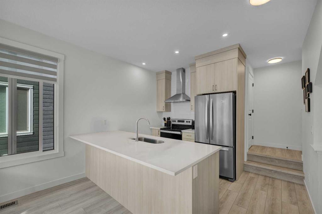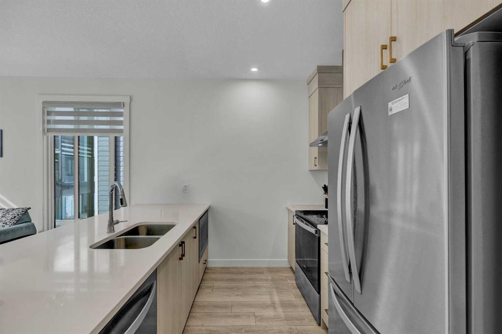 Welcome to this stunning, Hardieboard-clad end-unit in the award-winning community of Seton. Bathed in natural light from additional windows, this home perfectly balances elevated design with everyday practicality. Sophisticated Main Level: The open-concept main floor features 9-ft textured ceilings and massive 8-ft West-facing windows that flood the space with afternoon sun. The chef-inspired kitchen is a true standout, boasting: • Floor-to-ceiling cabinetry and sleek quartz countertops. • Premium stain...