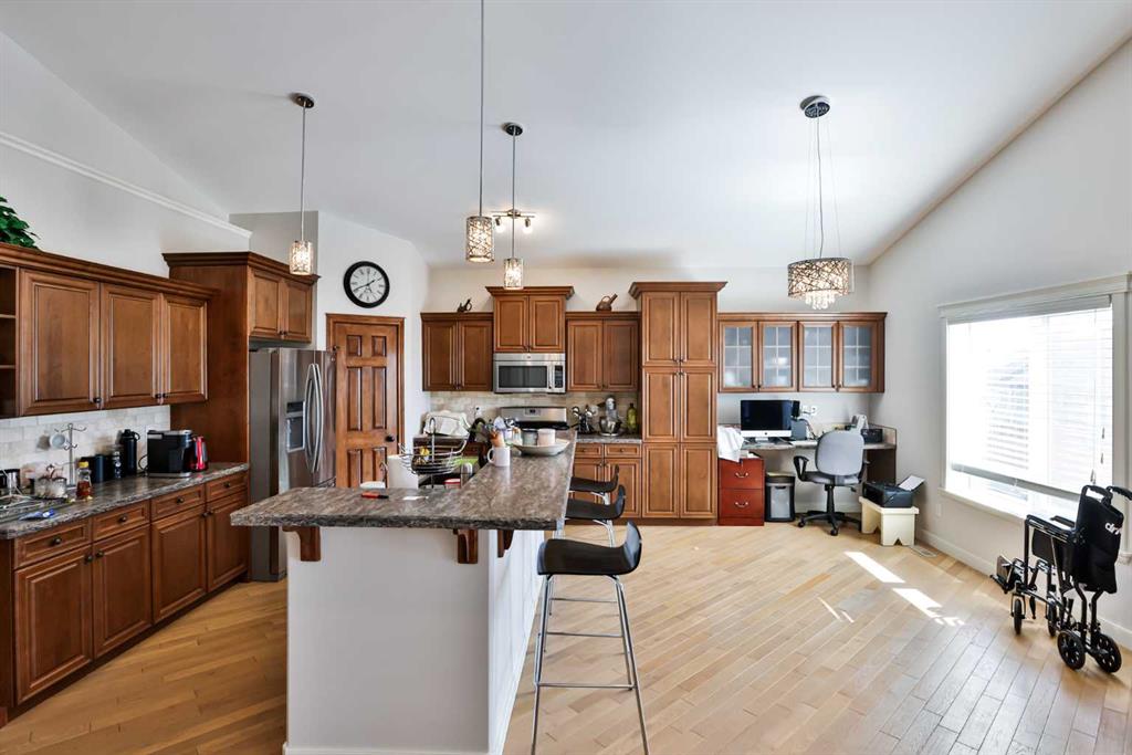 This custom built home has been thoughtfully designed to offer all of the upgrades and conveniences of an executive home with the benefit of a private basement revenue suite. The home's large entry archway with front double attached garage and the master suite windows over the garage, give this home fantastic curb appeal. The home's appeal is further supported by the superior finishes of Hardie board siding, stone, and metal railing. The main floor has a spacious open design with vaulted ceilings, hardwood ...