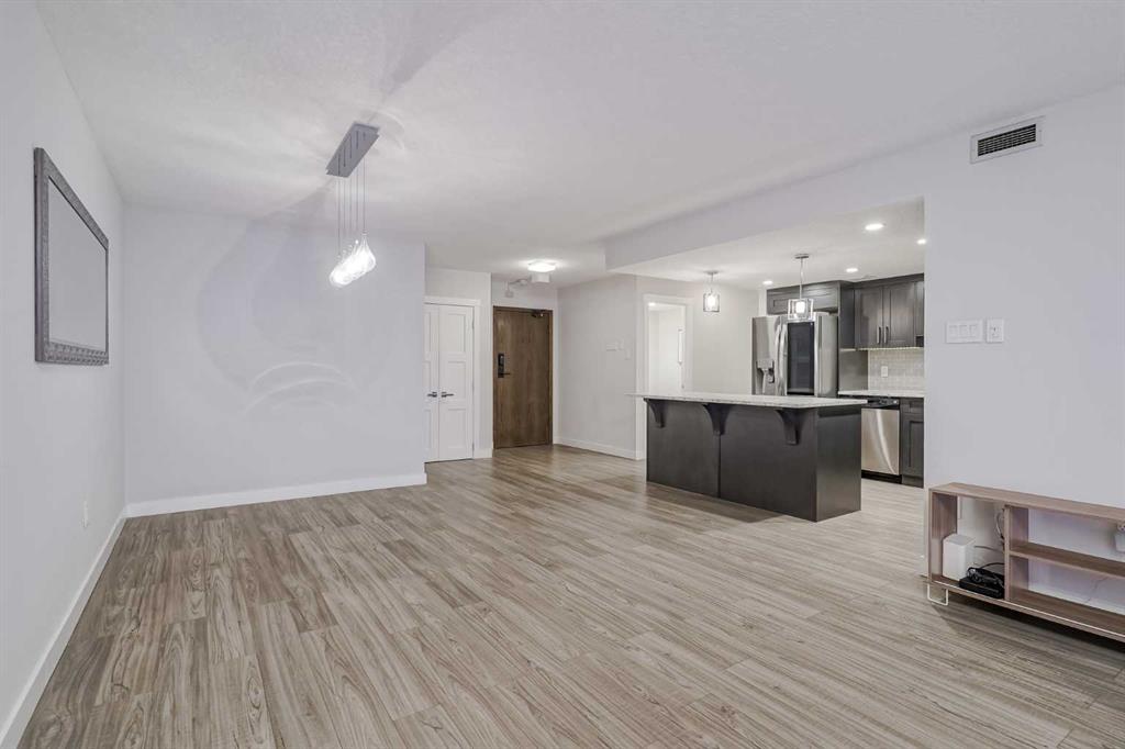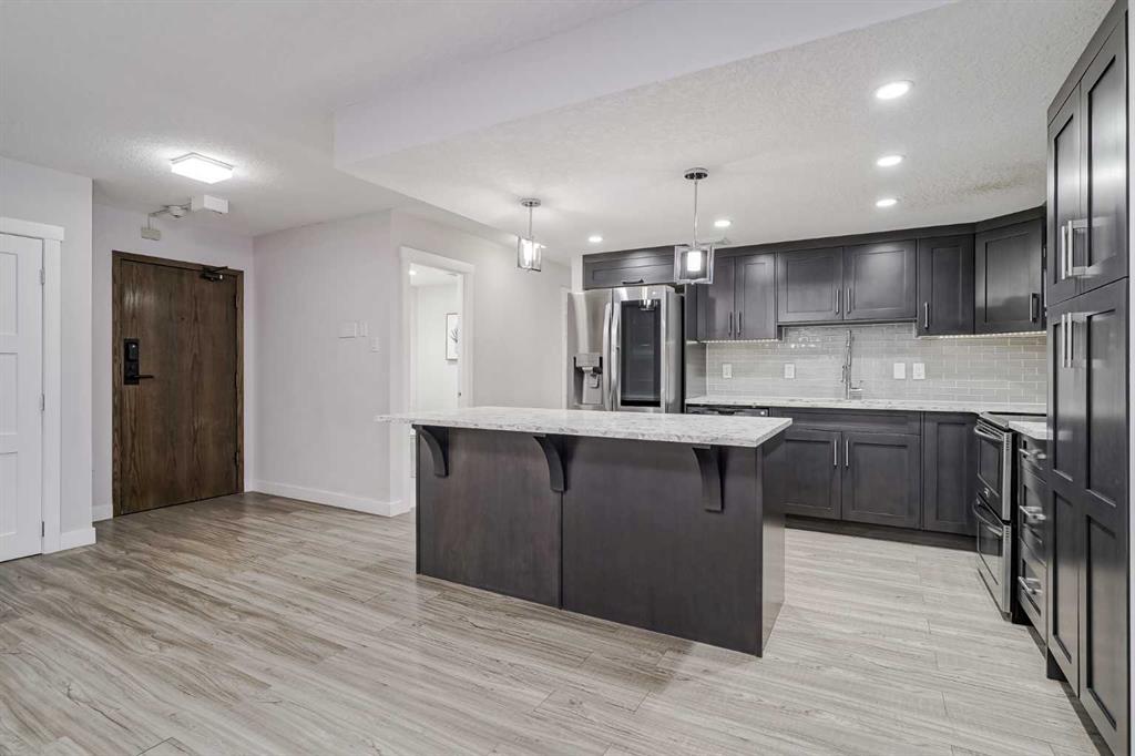 Experience urban living at its finest in the heart of downtown Calgary with this spacious, single-level apartment. Stunning 2-bedroom, 2-bathroom residence has been fully renovated, offering an expansive, open-concept layout that seamlessly blends comfort and style, making it an ideal retreat for young professionals or those seeking to downsize without compromising on space or luxury. From the moment you enter, you are greeted by the openess of the condo. Laminate flooring which extends throughout the main...