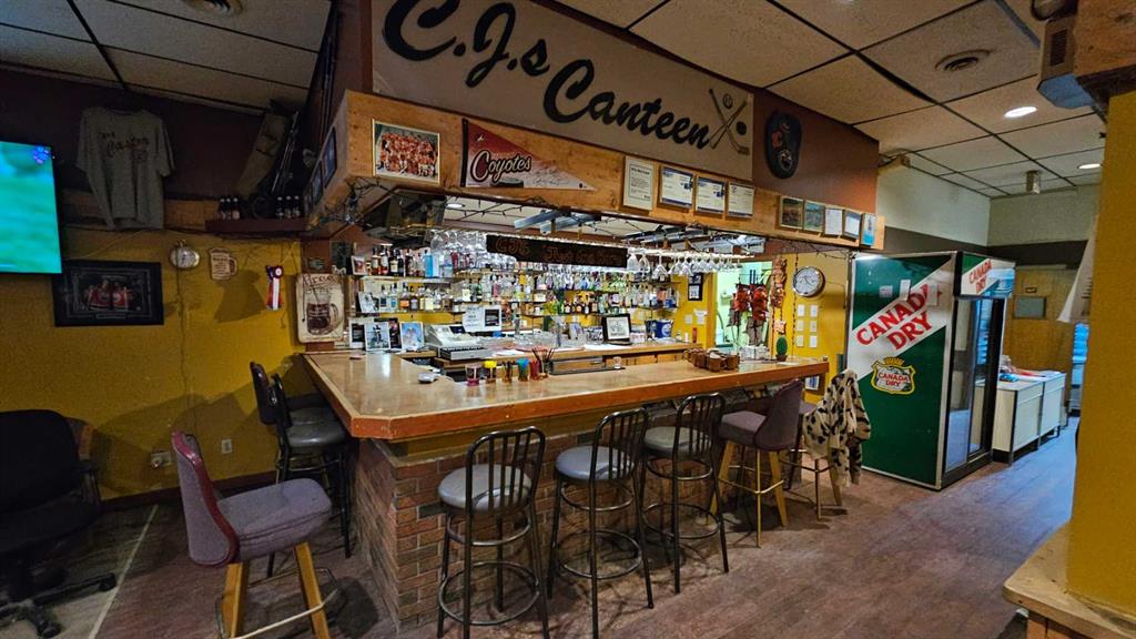 This 1980 Commercial building has been part of Castor businesses for years, with the CJ lounge-which is able to hold 75 patrons, the now coffee shop where all the important ideas are exchanged and debated over by the locals and visitors. It was and can be a restaurant again, with large walk in freezers, grill ,fryer, hood and warming islands , coolers and stand alone coolers. The business has added The Castor Liquor Store to its location and serves a wide variety of spirits. The former restaurant has the f...