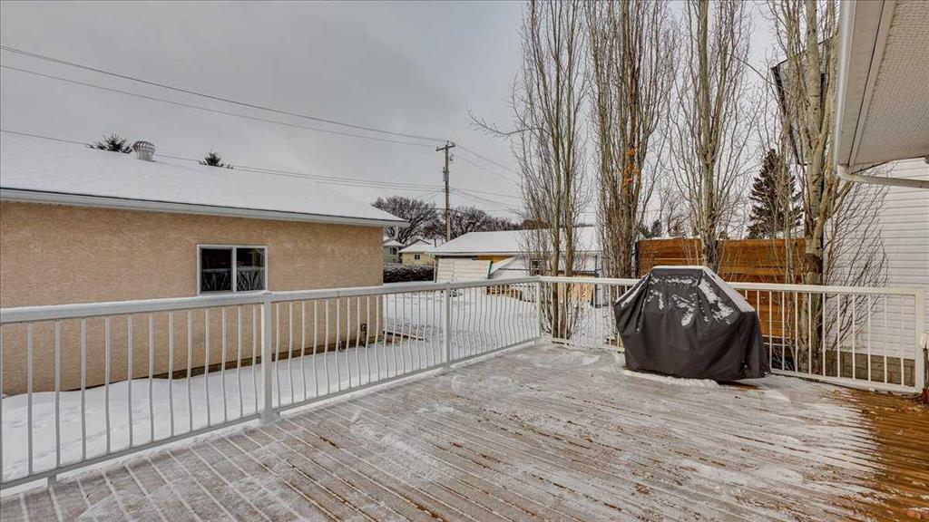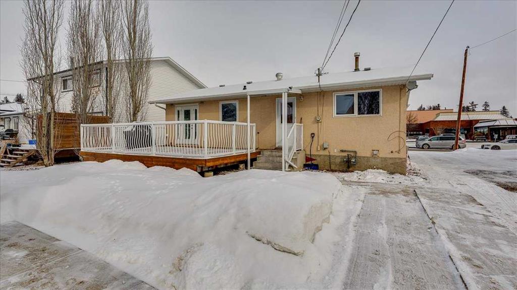 Well maintained Bungalow with Double Detached Garage, across from the Hospital in Lacombe. Large windows allow for plenty of natural light, there's also a Spacious kitchen, with laminate counter tops, full tile backsplash, timeless cabinetry, with access to a modest dining area that leads to a very large deck out back. There are also two bedrooms on the main floor with a full 4 piece bathroom. Downstairs comes with a second kitchenette, another 4 piece bathroom, large Rec Room area, and an office that co...
