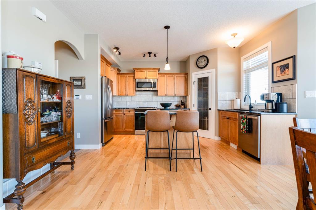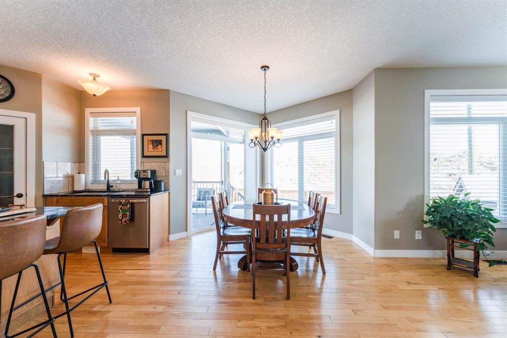 Sometimes you just walk into a place and feel at home...and this is one of those properties! Meticulously maintained and pride of ownership is evident throughout this 5 bedrooms & 4 bathrooms two storey in Bankview Estates. There is a spacious living room with corner gas fireplace, dining nook surrounded by windows and patio doors to the covered deck, open kitchen with warm wood cabinets and stone countertops, and the main floor laundry is a bonus. There is no shortage of storage with the heated attach...