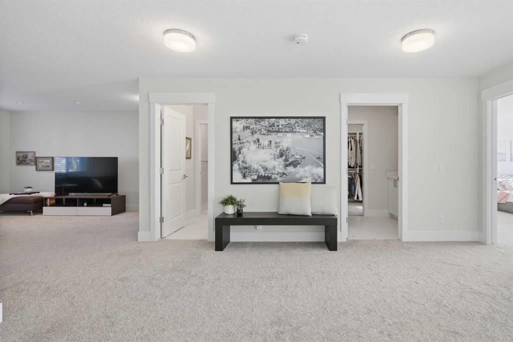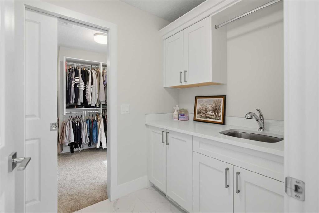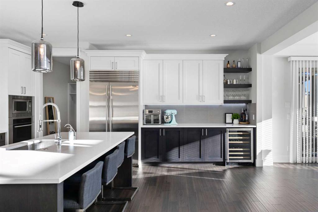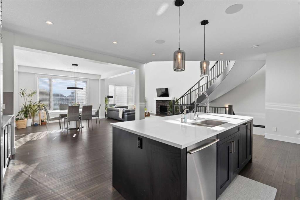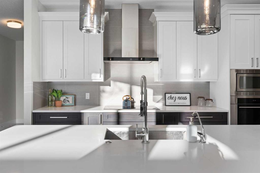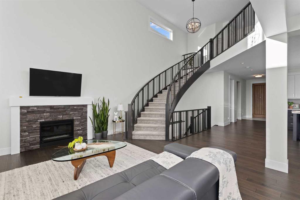 3,155 SQ.FT. | 3 BEDS | 2.5 BATHS | HOME OFFICE | 3-CAR GARAGE | SOUTH-FACING WALKOUT | BACKING GREENSPACE | DESIGNER FINISHINGS | Set on a rare south-facing walkout lot backing onto a walking path, this executive home offers one of the finest opportunities in Aspen Woods. Natural light pours through the main level, highlighting the soaring vaulted ceilings of the great room, upgraded hardwood floors, refined millwork, and statement light fixtures, all anchored by an elegant curved staircase. The gourmet k...