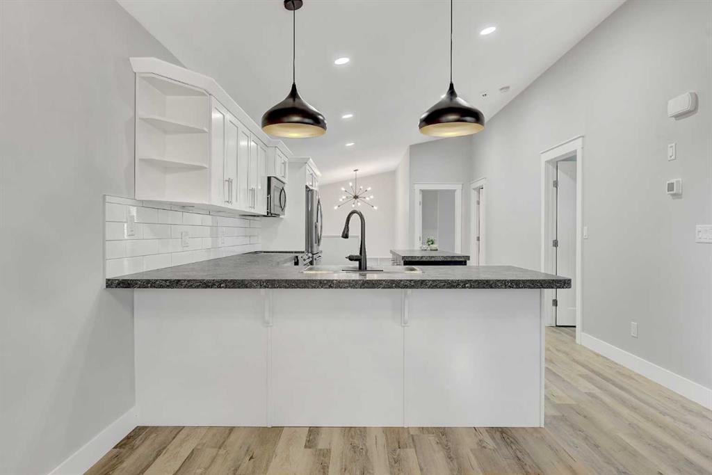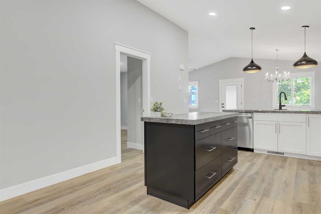 Experience the appeal of a quality well built home that looks and feels brand new! This immaculate property boasts current colors and decor, trendy lighting and modern finishes throughout. Designed for efficiency, it features triple pane windows, R50 attic insulation, and a high-efficiency furnace. The bright, open floor plan has vaulted ceilings, and durable vinyl plank flooring. The custom kitchen is a chef's dream with white shaker soft-close cabinets and drawers, a movable grey island with pull-up seati...